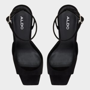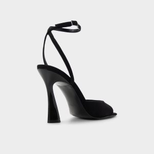 The Alisonn black high heel features a sculptural heel and a sleek ankle strap. combining artful design with elegant sophistication. Perfect for dressing up and making a refined statement at any party or special occasion.
