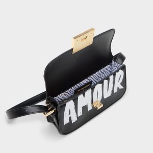 Bold AMOUR scrawl on sleek black leather makes this shoulder bag feel like street art you can carry. while a gleaming gold turn-lock announces secure essentials and confidence you wear from cafe to gig. Sling it with a cropped blazer for coffee catch-ups. or tuck it under your arm at gigs to finish an urban. all-day look.