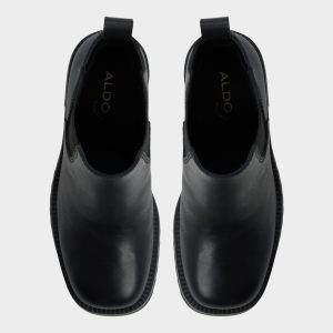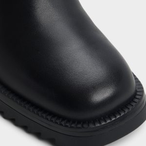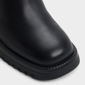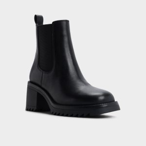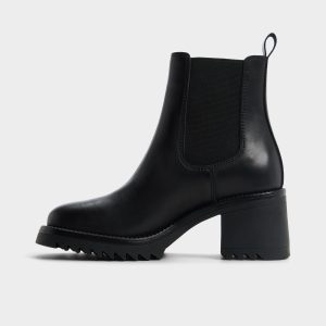 Rugged lug sole bites pavement under sleek black leather. while a chunky block heel and stretchy Chelsea panels offer pull-on swagger for a city-ready stride that can keep up from dawn to dusk. Pair with tailored trousers for presentation days. or ground a cozy sweater dress when markets call for edge.