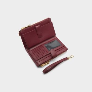 Rich burgundy synthetic elevates this slim wristlet into low-key luxury. with tonal embossing and glinting gold studs. while a detachable strap swaps handheld for hands-free in seconds. Carry it with a slip dress at gallery nights or tuck it inside your commuter tote for coffee-run breaks. sealing every switch-up with polish.
