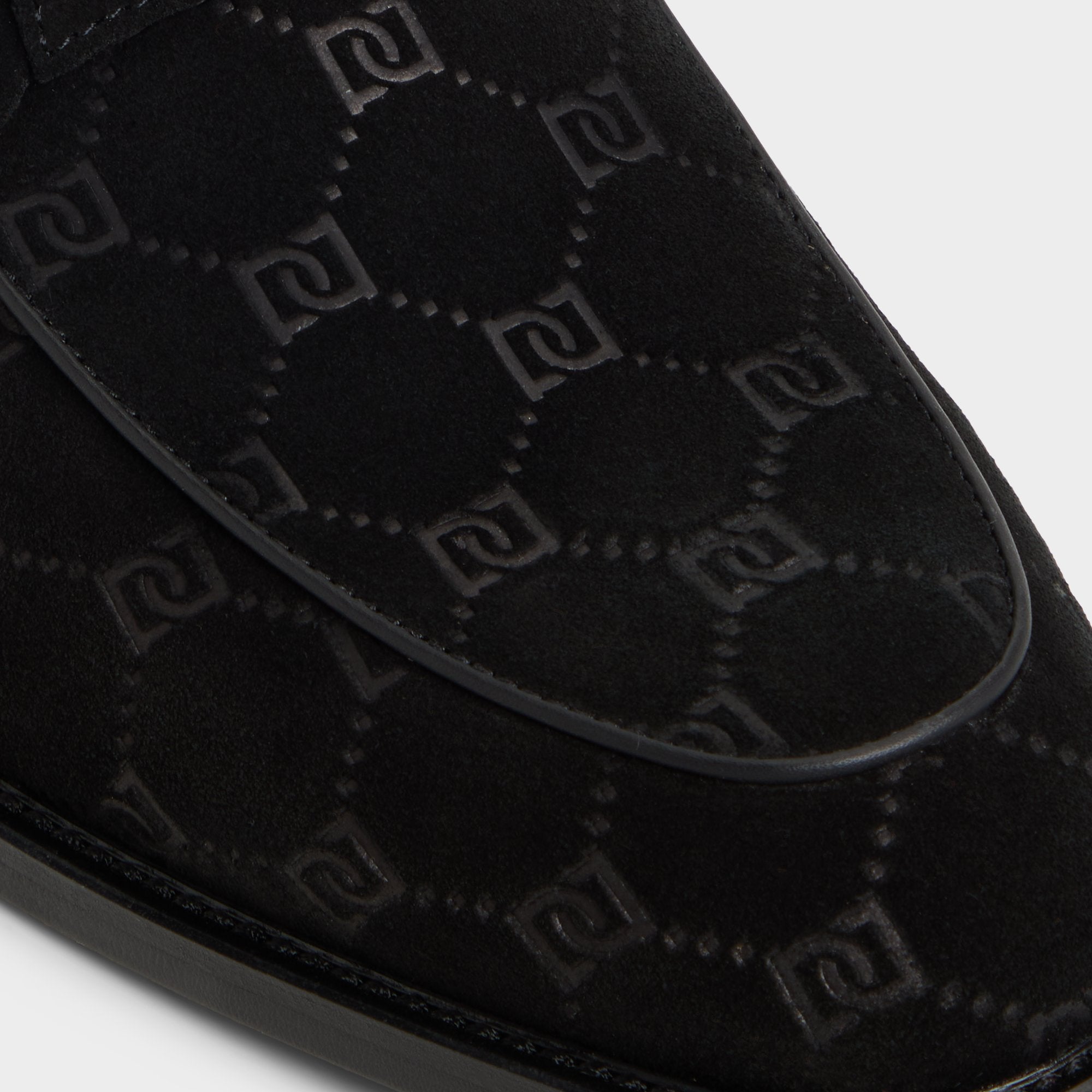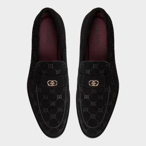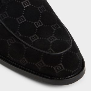 Monogram-embossed suede gives this black loafer a refined texture. with a brushed gunmetal bit adding a touch of shine. and a flexible rubber sole ensuring comfort all day and into the night. Pair it with a slim charcoal suit for client meetings or cuffed black jeans at jazz-bar nights.