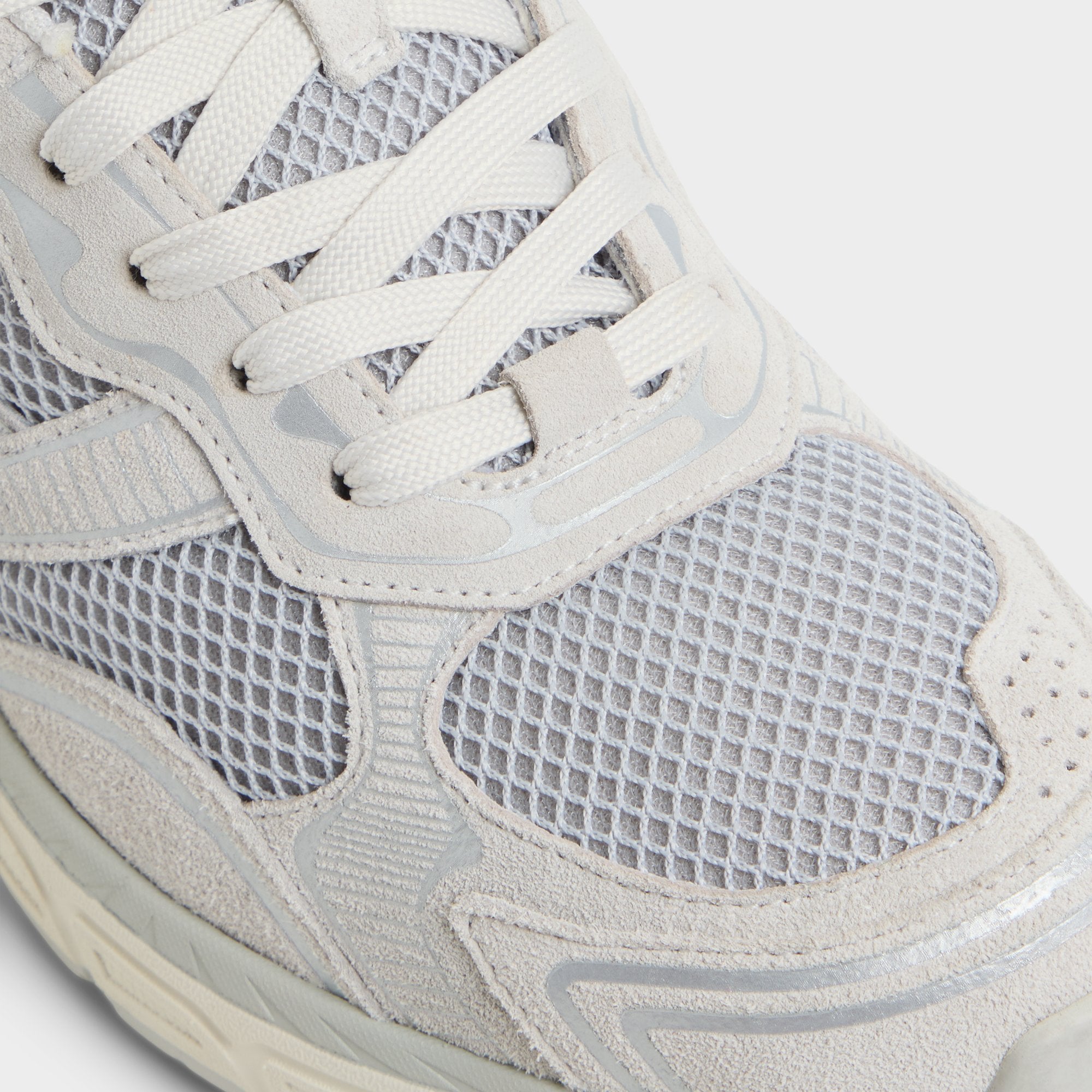 Off-white mesh blends with soft grey suede overlays on this low-top. while the sculpted jogger sole provides cushioning that makes running errands. airport travels. and after-work strolls feel nearly weightless. Pair with tapered cargos for weekend markets or cuffed dark denim for casual Fridays-the subtle tones integrate anywhere seamlessly.