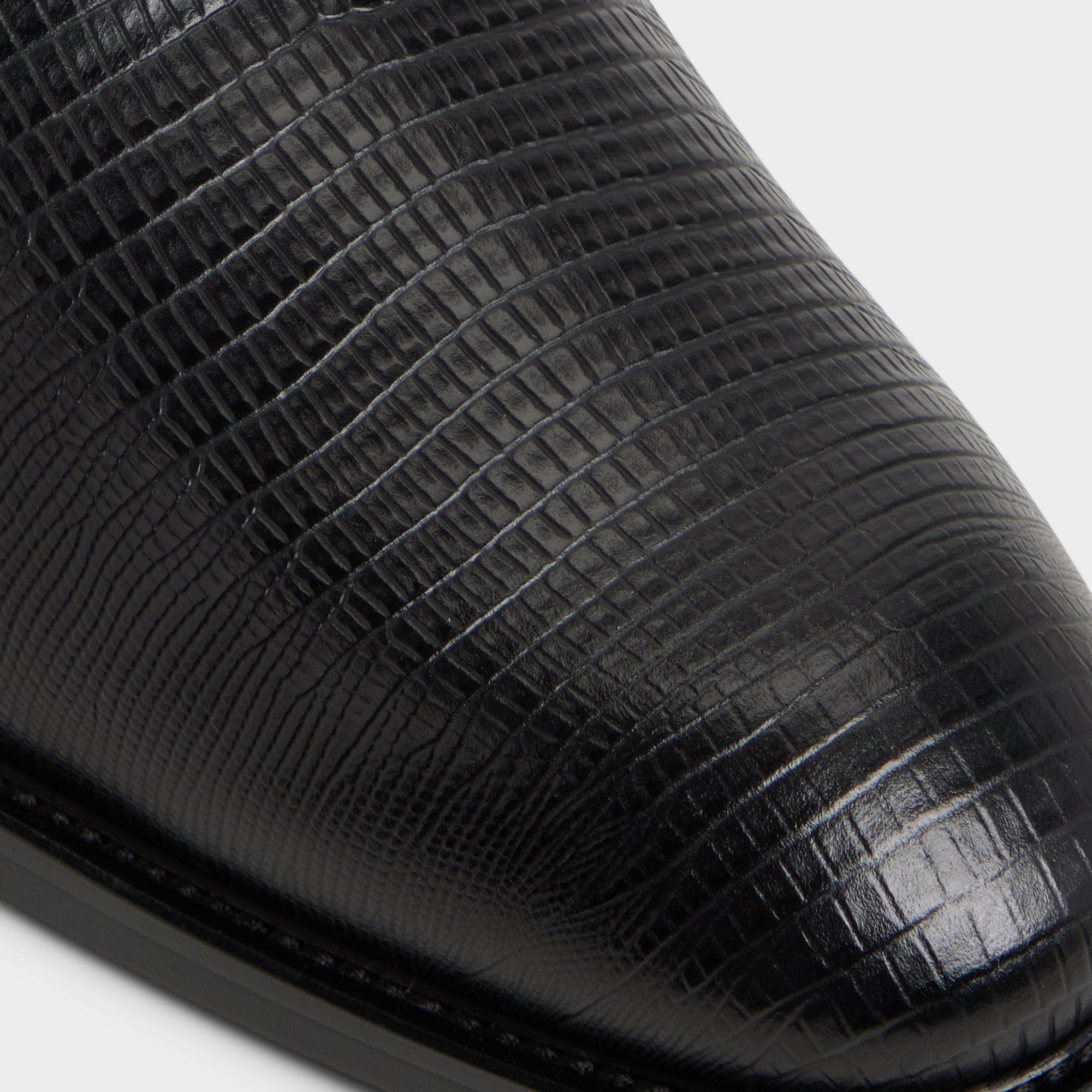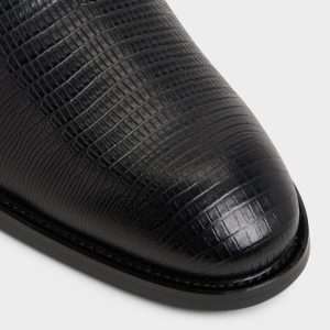 Lizard-embossed black leather brings an understated flair to an Oxford. with its texture playing with the light. while a sleek almond toe and leather sole keep things sharp and comfortable for long evenings. Pair it with a charcoal suit for interviews or team with dark denim and a blazer for jazz nights to show how the subtle grain fits both.