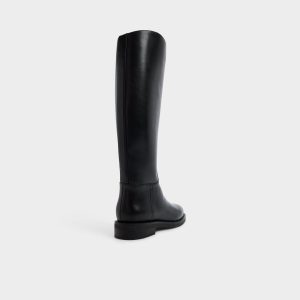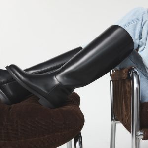 Supple black leather reaches knee-high in an equestrian silhouette with a low block heel plus cushioned inset keeping strides steady through urban shortcuts from morning train rush to late gallery visits. Pair with a tailored coat for crisp commutes or slip over ribbed knits when weekend markets beckon.