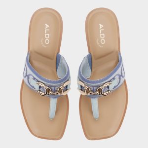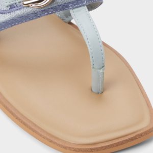 Denim-blue jacquard crowns a wide strap thong sandal. brushed-gold buckle lining lending quiet polish. while a flexible flat keeps movement easy from city staircases to sunlit boardwalks for spontaneous city days. Pair with white cutoffs for farmers-market loops. or slip beneath a breezy midi for sunset strolls.