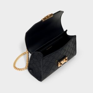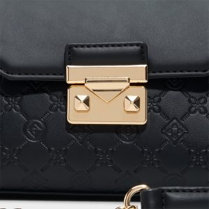Midnight-black quilted synthetic leather frames a geometric flap crowned by a bold gold push-lock. giving this structured crossbody city-polish with a whisper of glam that travels from desk to dinner. Carry it with a satin slip for rooftop dinners. or sling it over blazer-and-jeans for city coffee runs.