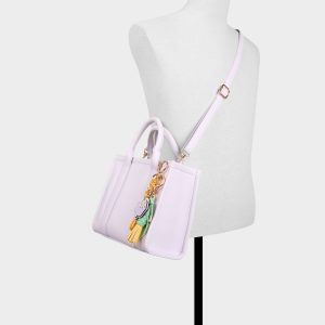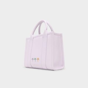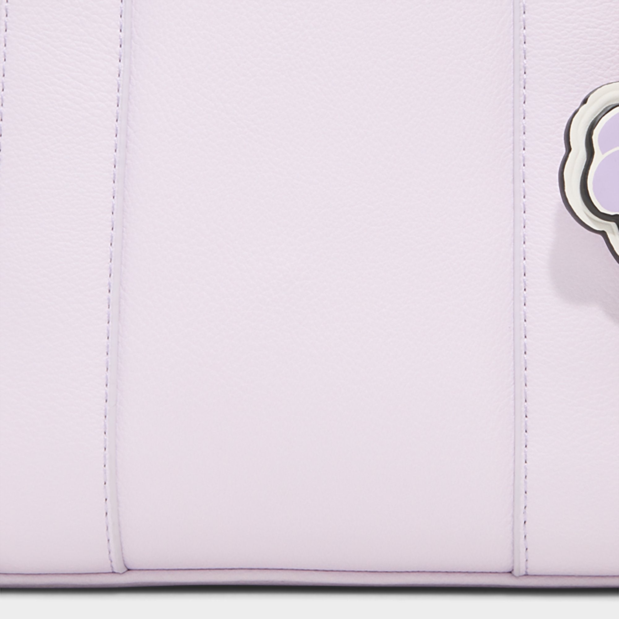 Soft lilac leather shapes this boxy tote. featuring a sunny plaited tassel with tropical blossom pendants that clip on for instant mood-boosting colour. and double top handles keep the silhouette polished yet playful. Carry it with white tees and wide-leg jeans for coffee runs. or sling it over a slip dress at rooftop sunsets to pull the look together.