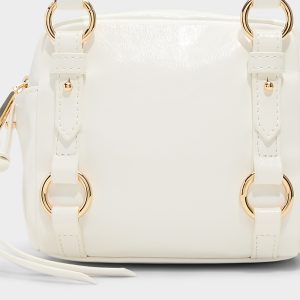 Glossy patent shine catches city lights before you step off the curb. anchored by gold ring buckles on the slim shoulder strap of this compact carry zipping essentials into night-ready style. Pair it with bias-cut slips for rooftop drinks or sling over cargo pants on late-night coffee runs.