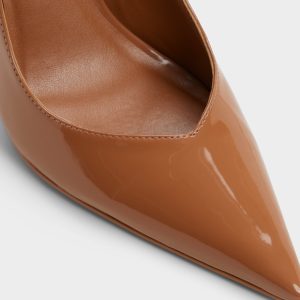High-gloss patent elevates this cocoa pump’s sculpted silhouette. giving a refined shine that catches every city corner. while skyward heels extend your stride with confidence as city lights glitter overhead. and all-day comfort hums beneath. Pair cropped suits on promotion days. or slip under a slinky midi when midnight plans sparkle with extra joy.