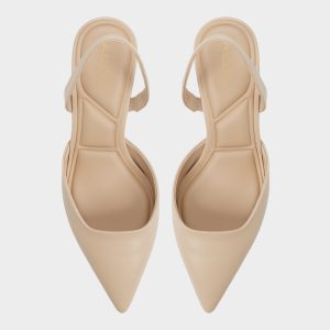 Supple beige leather forms a sleek slingback with a pointed toe. and the kitten heel offers just enough lift for confident meetings and graceful cab hops. Pair it with cropped suits for pitch days. or slip beneath a satin midi when gallery openings flow into cocktails.