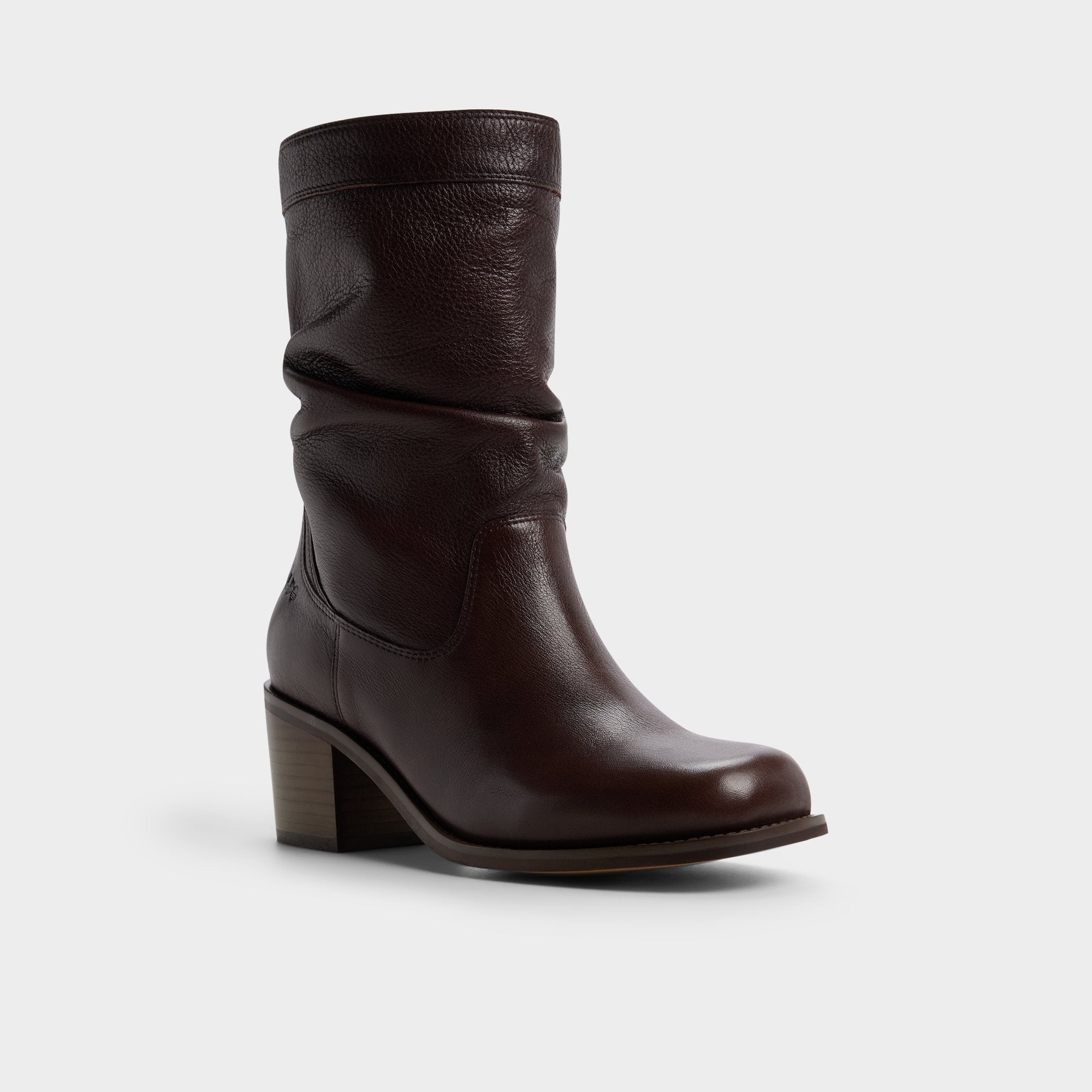 Cocoa leather drapes into a graceful slouch around the calf. pairing with a soft lining and a sculpted stacked block heel that brings steady comfort to brisk commutes and cafe check-ins. Pair with skinny denim for gallery afternoons. or ground a cozy sweaterdress for late-night ramen runs.