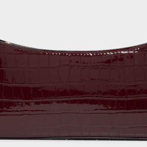 Glossy burgundy croc-embossed leather shimmers over this slim shoulder baguette. delivering after-dark confidence with a gold-tone zip and an adjustable strap for a truly wearable touch of luxe. Carry it with a satin slip for rooftop drinks or sling it over jeans for gallery afternoons. finishing looks with discreet polish.