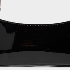 High-gloss patent leather adds shine to this slim baguette. its trapezoid silhouette framed by tonal stitching and gold hardware. all zipped tight for minimalist nights. Tuck it under a satin blazer for gallery openings or sling it over a ribbed tank and cargos for late-night bites.