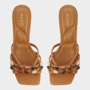 Elevate your vacation look with this caramel beige mule featuring shimmering gemstones on the front straps. The sturdy block heel offers all-day comfort while the sparkling embellishments add a touch of glamour to sundresses. linen pants. or resort wear. Easy to slip on and impossible to miss.