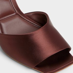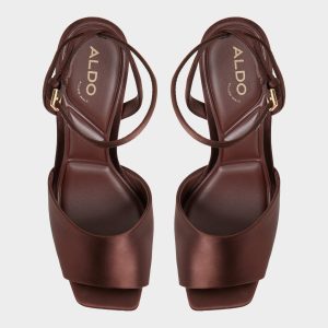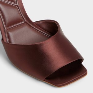 Liquid-satin chocolate straps wrap a sleek stiletto. elevating the mood with city-night polish and a cushioned footbed that keeps you composed from after-hours glam to dawn-lit strolls through crowded streets and quiet corners alike. Pair with cropped denim for day-to-night lunches. or ground a sleek satin midi for rooftop soirees.