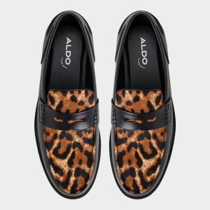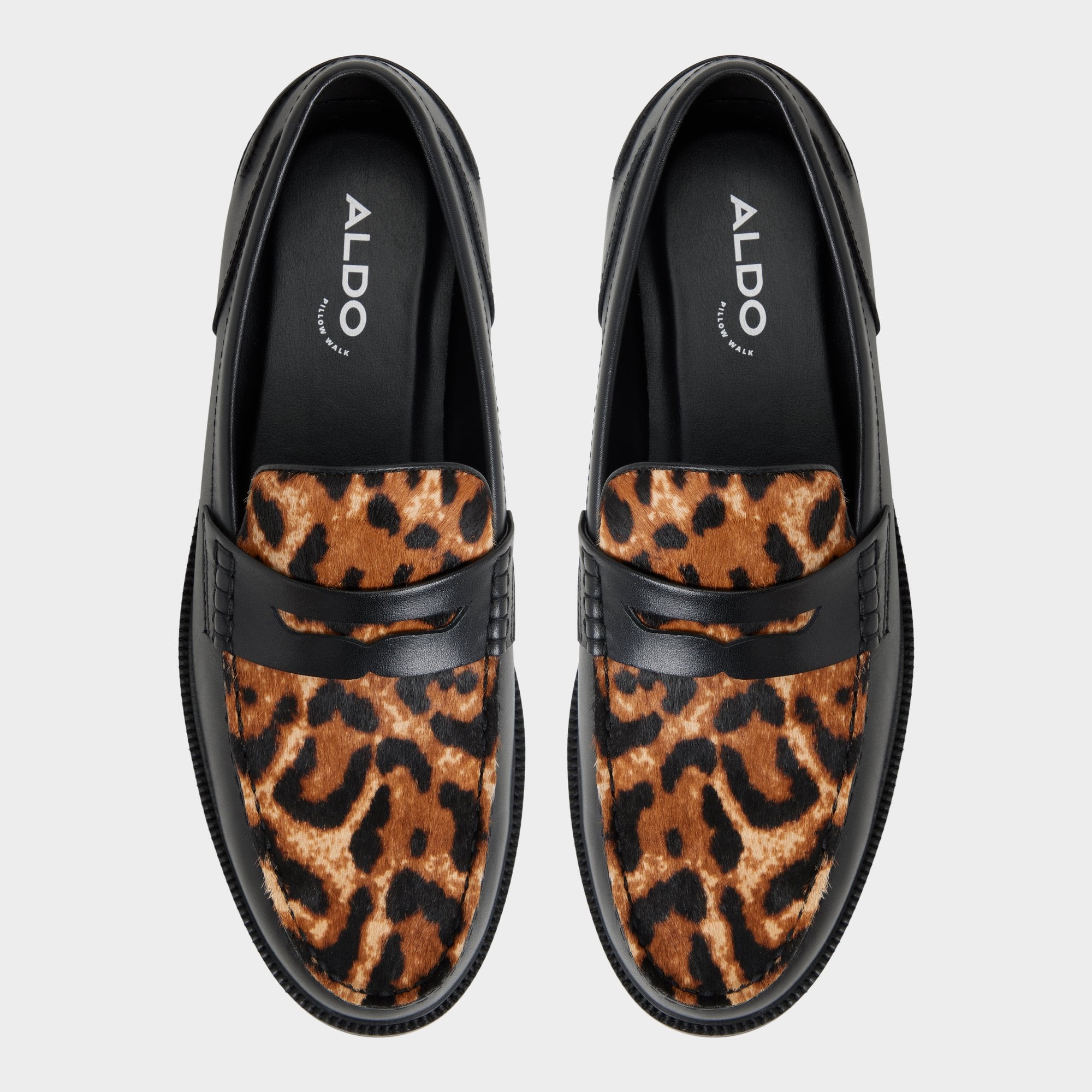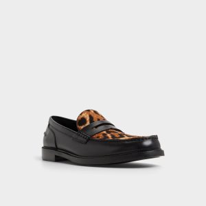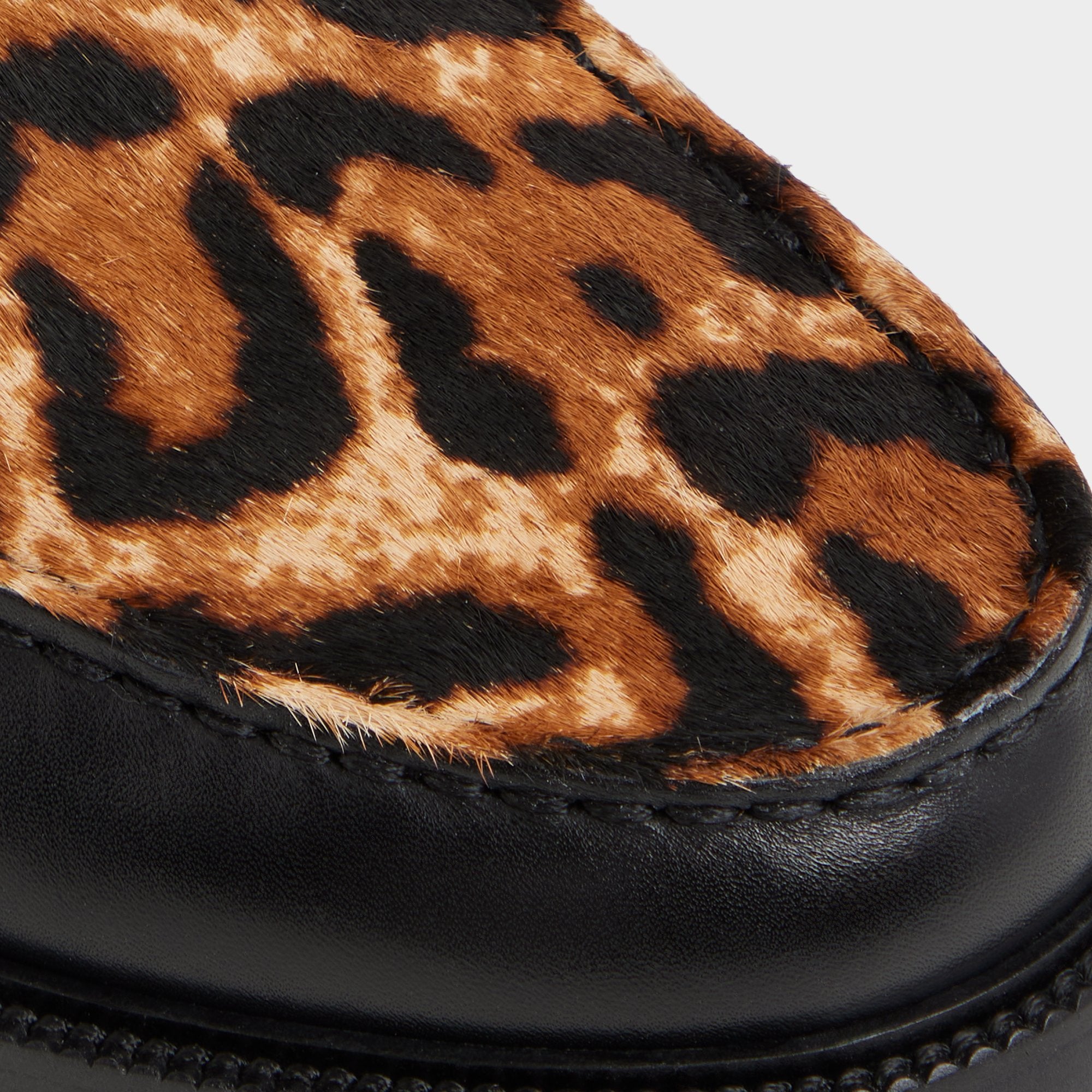 Leopard haircalf on this penny loafer contrasts with leather. delivering an edge that stands out in any room you walk into. Pair with cropped trousers and a knit polo for gallery events. or style with denim and a tee for concert nights. letting the print do the talking.