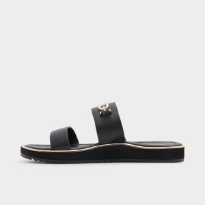 Smooth black leather slides ride on cushy footbeds. while gleaming gold buckles sit atop adjustable straps. turning everyday errands into a touch of luxe and boosting confidence from morning to night. Pair them with joggers for coffee runs. or ground a breezy midi for patio dinners as the city glows.