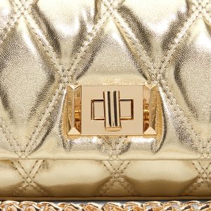 The Lediaa crossbody bag shines boldly with its metallic gold finish and quilted texture. Designed for those who dare to stand out. this eye-catching accessory effortlessly blends luxury with edgy style. Its compact size and versatile strap make it perfect for making a statement on the go.