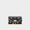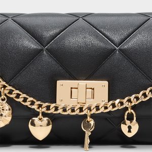 Add a touch of fun to your outfit with the Liennaa quilted bag in sleek black. Adorned with charming embellishments. this playful bag keeps you organized with two roomy interior compartments and a handy external pocket. Perfect for carrying your essentials in style wherever you go!