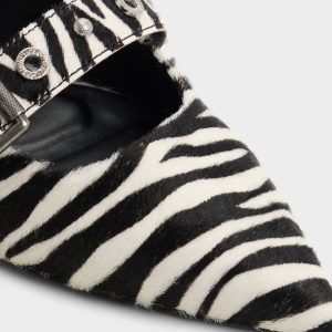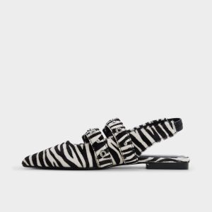 Wild zebra stripes in soft faux fur meet two polished buckles on this pointy slingback. turning the classic flat into a conversation starter that walks easy from sidewalk huddles to after-dark detours. Pair with cropped black denim for midday brainstorms. or ground a satin slip dress when gallery openings blur into midnight ramen.