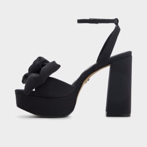 Midnight satin envelopes the platform and block heel. while sculptural bows soften the edges to deliver lift with steadiness. so entrances feel top-tier from stair landings to the dance floor. Pair with tailored pants for a city-night meeting. or let them elevate glittery minis as rooftop dinners drift into starry strolls.