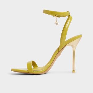 Glossy lime leather boosts moods instantly as sky-high stilettos topped by dangling charms make strides camera-ready yet cushioned comfortably belowfoot-pair these vibrant shoes alongside satin minis during rooftops gatherings-or trade out suiting crops where presentations demand bold pops of colour