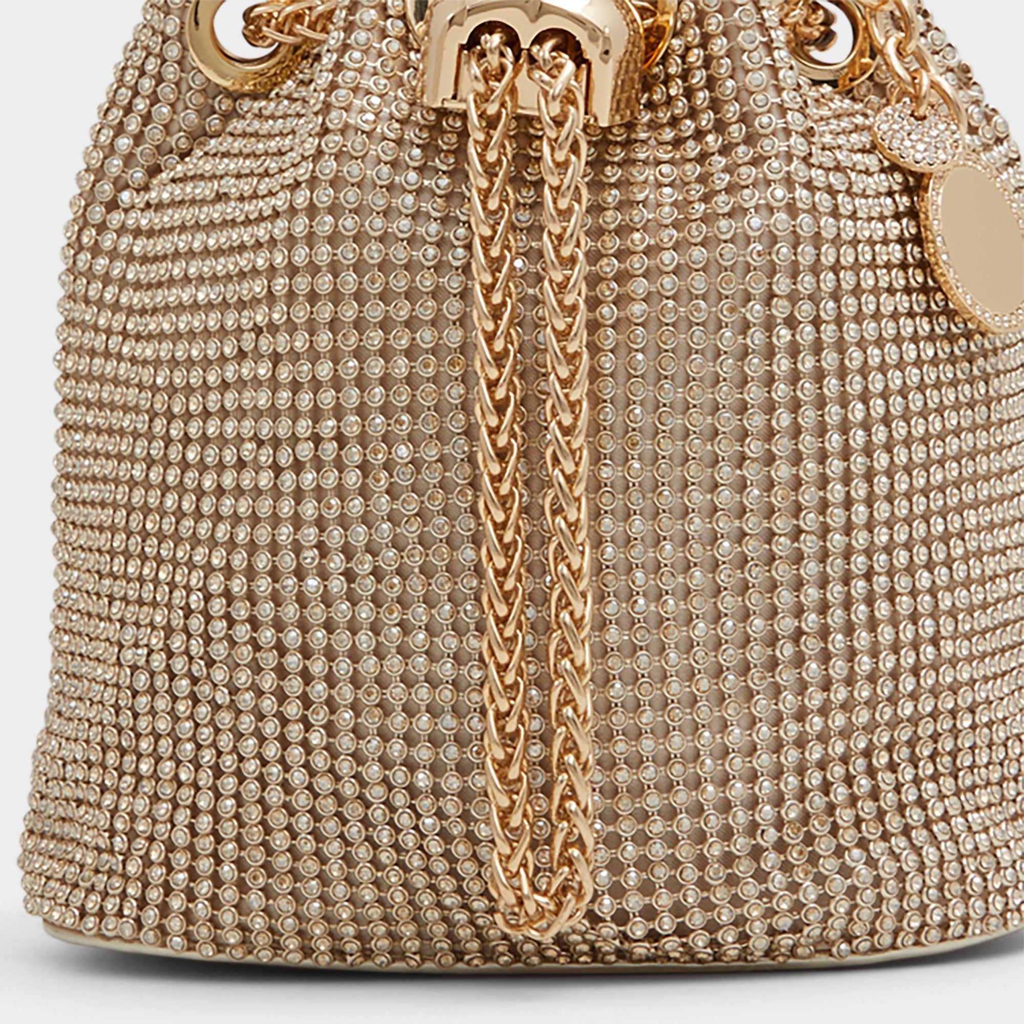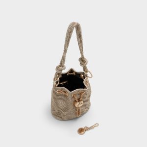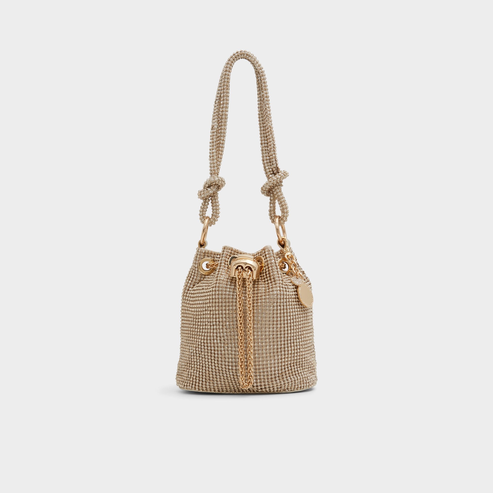 Compact yet eye-catching. this rhinestone-embellished bucket bag is a statement piece that will add a touch of sparkle to any ensemble.