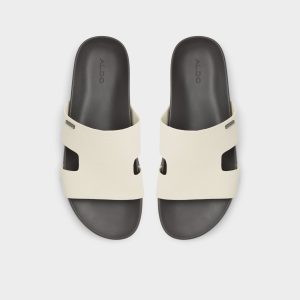 These embossed leather slides with side cutouts are perfect to keep you cool on warmer days.