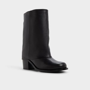 Supple black leather wraps a streamlined mid-calf shaft. and the quietly bold block heel gives solid. all-day lift so coffee-run strides. corridor turns. and after-hour detours feel effortless and surefooted. Pair with tailored trousers for presentation mornings. or slip alongside a sweater dress when park walks shift into candlelit tapas.