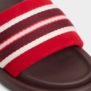 Sun-chasing stripes trace the cushy textile band of this slide. riding a flexible rubber sole for all-day ease from pool decks to coffee runs and lazy weekend wanderings that pair effortlessly with sunlit days. Pair with cropped denim for poolside brunches. or slip on under a breezy maxi as golden hour drifts into starlit strolls.