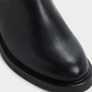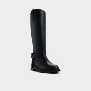 Supple black leather rises knee-high in a clean riding silhouette. with a harness-style buckle strap and a low block heel that lend subtle edge and all-day steadiness for city strolls. commutes. and evenings out. Pair with slim jeans for coffee-to-commute. or slip into a knit midi as museum afternoons melt into rooftop cocktails.