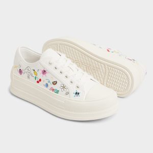 Hand-drawn doodles burst over crisp white canvas on this chunky cup-sole low-top. turning it into a playful diary page that hugs feet softly from sunrise commutes to midnight grocery runs. Pair with frayed denim for cafe catch-ups. or ground a swingy mini dress when festival sunsets stretch long.