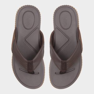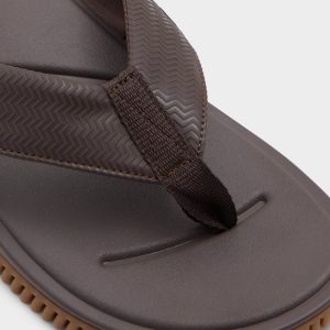 A chevron-textured brown strap combines with a cushy synthetic footbed. while the flexible wave-grip rubber sole prevents slips during shoreline detours or poolside sprints for fresh drinks. Pair with swim trunks for beach volleyball or anchor rolled linen pants at sunset barbecues-barefoot ease. grown-up look.