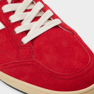 Crimson suede gets energized by a white side stripe on this low-top sneaker. with a cushy cupsole that keeps landings soft whether sprinting for the subway or looping city blocks. Pair it with cuffed jeans for game-day hangs or switch to tailored joggers for rooftop drinks after dark.