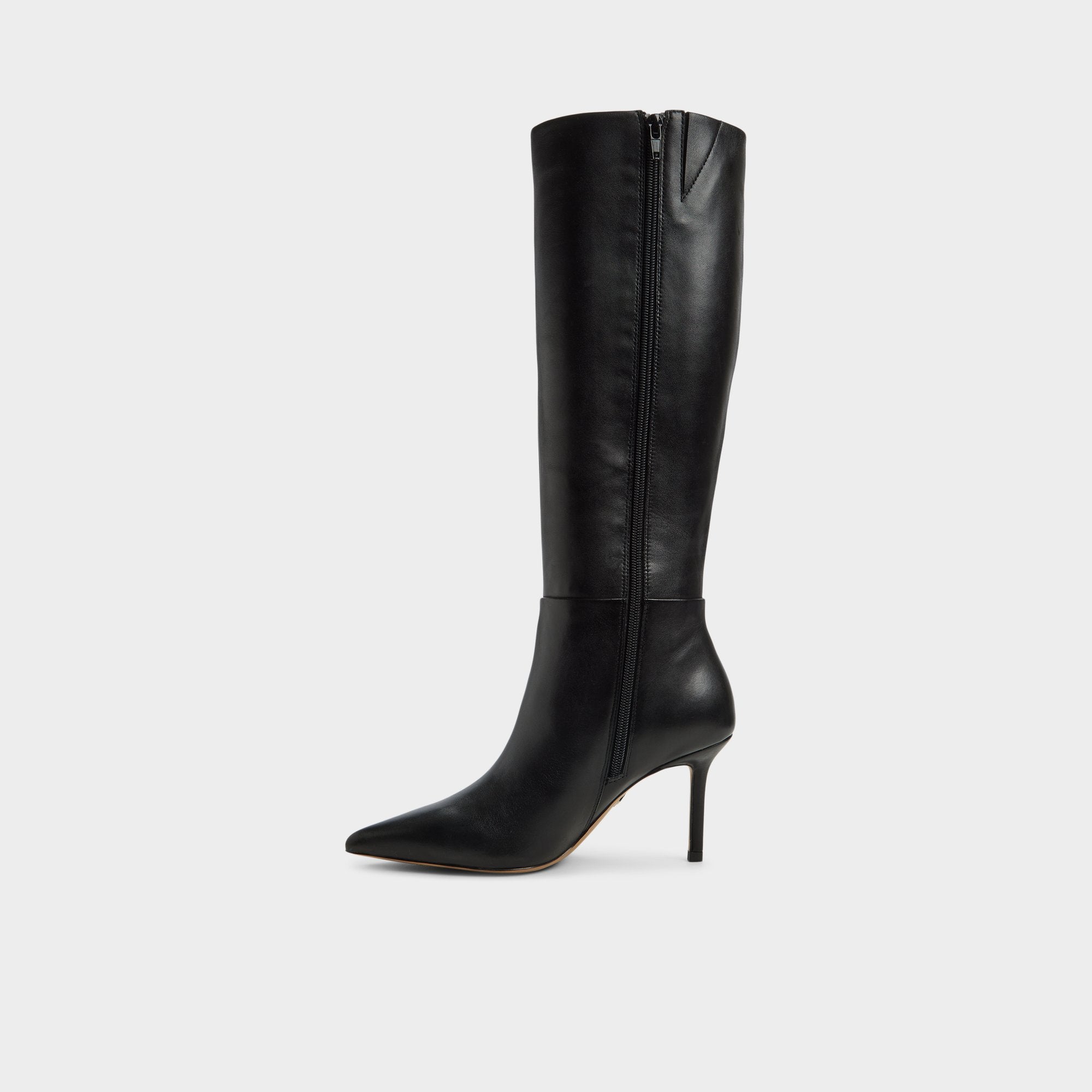 Supple black leather traces uninterrupted lines from pointed toe to a sharp stiletto-heeled shaft. shaping a silhouette that turns corridors into catwalks and city blocks into stages for the after-hours crowd. Pair with sleek tailoring for after-hours meetings. or soften the edge with a flowing midi for rooftop cocktails.