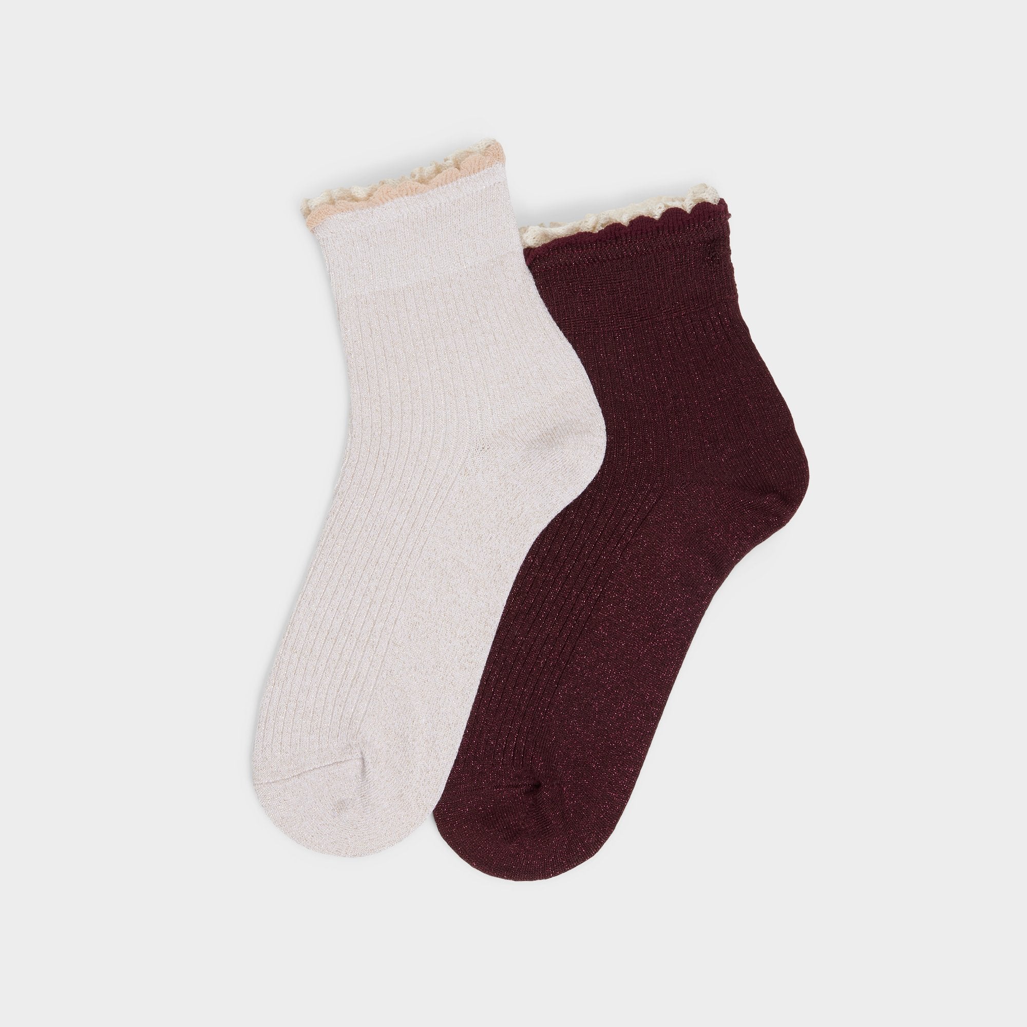 Two-toned ribbing creates scalloped edges that catch the eye as you move. turning these socks into a playful moment you can wear all day. Pair them with loafers for campus runs. or stack under a skirt and sneakers for weekend errands.