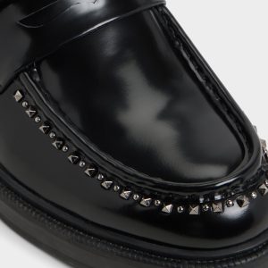Patent leather gleams with matte studs across the loafer’s silhouette. giving a rebellious edge. while the lug sole anchors each stride on city streets and beyond. Pair it with slim black denim for gallery nights or cropped trousers for after-work drinks. as the studded detail makes the look.